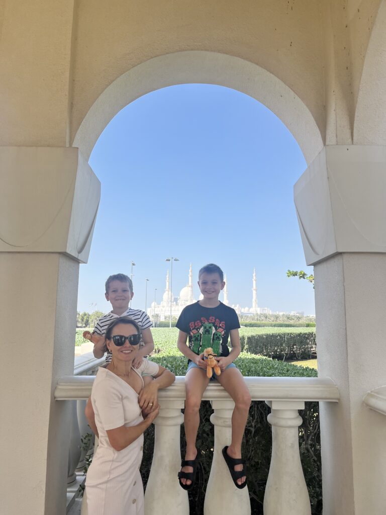 Do Abu Dhabi lecimy przez Kraków. Warszawa nie dorobiła się jeszcze lotów bezpośrednich (będą w 2025). Jesteśmy po takim maratonie zawodowo- prywatnym i tak totalnie niedospani, że w Krakowie (pobudka była o 4tej rano) od razu zasypiamy w samolocie. Coś tam gadają, ale słyszymy to daleko przez sen.. Jakiez jest nasze zaskoczenie, gdy po 3h snu okazuje się że nadal stoimy na lotnisku. Jest mgła i lotnisko zamknięte. Siedzielismy 3.5h w samolocie, zanim wystartowaliśmy, a my spaliśmy jak zabici, dzieciaki szczęśliwe ze dostały na tak długo telefony 🙂  Jakże ciągnie się ta podróż, ale w koncu udaje sie nam dolecieć po prawie 10h w samolocie. Dziękujemy WizzAir 🙂