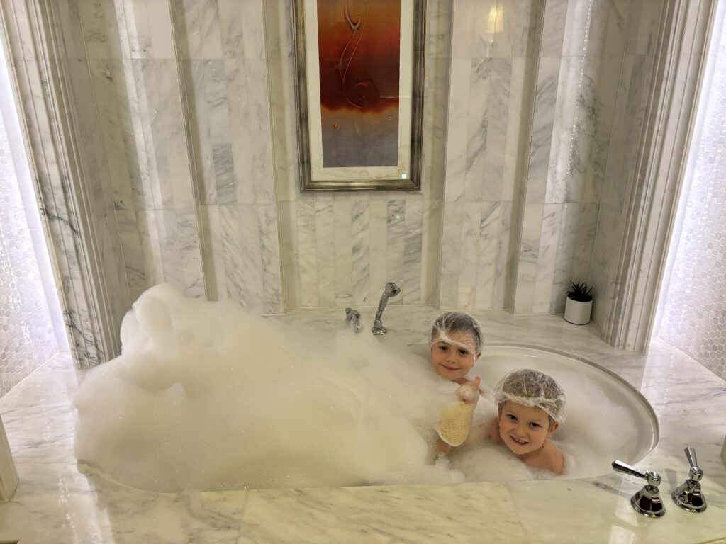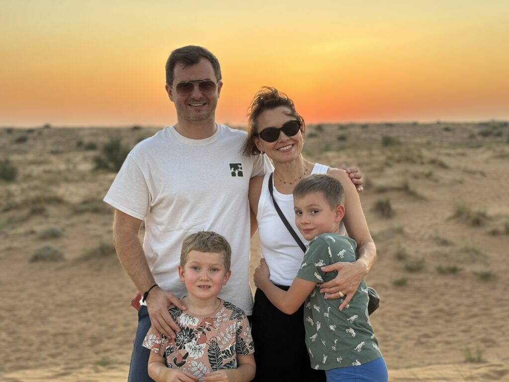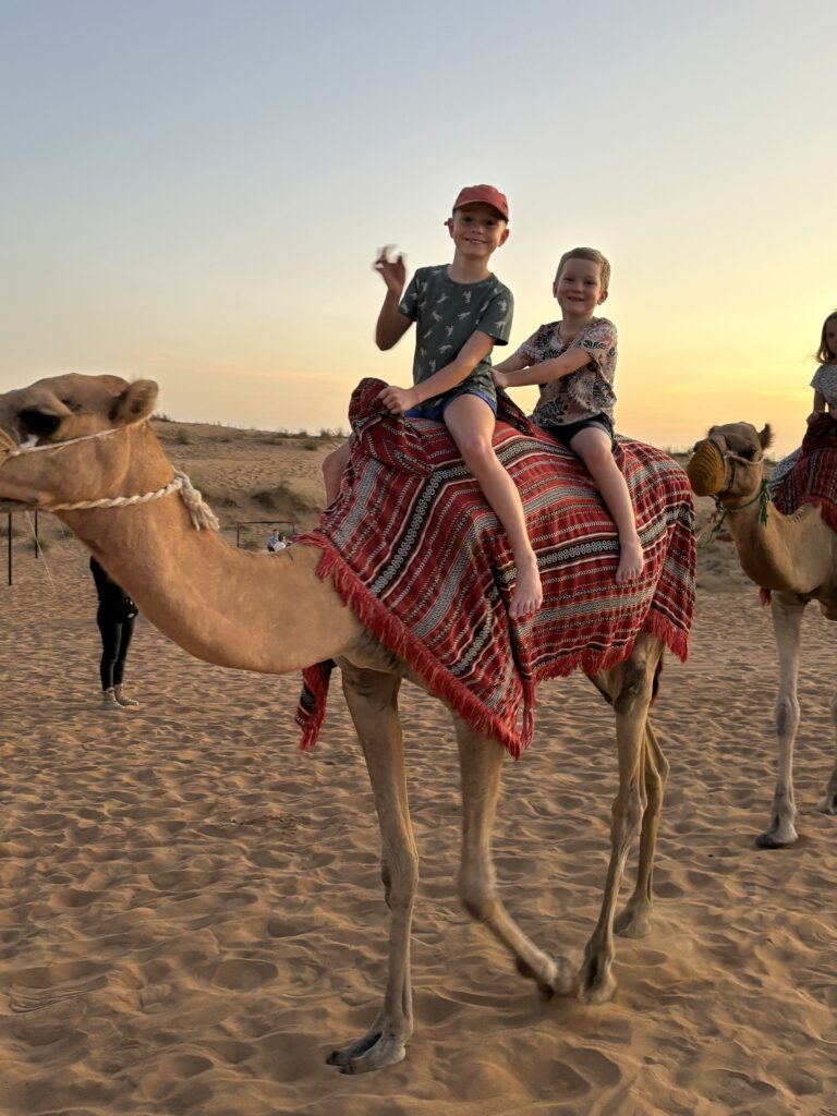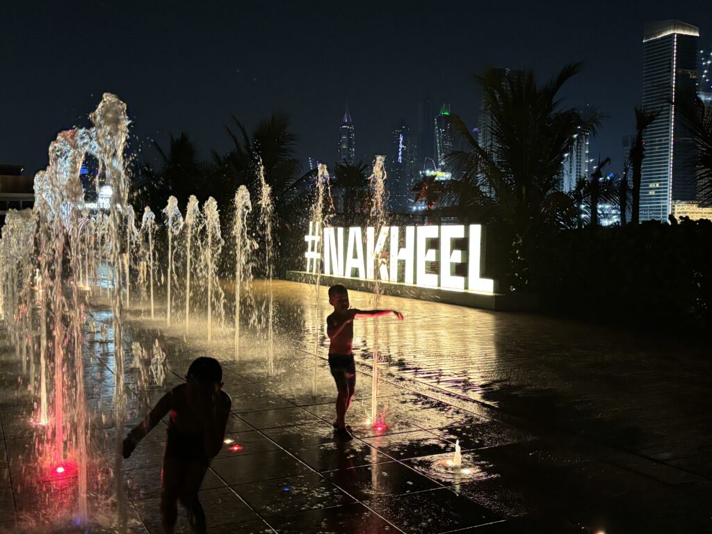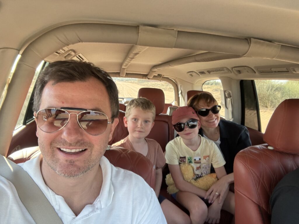 Wylot będziemy mieć z Dubaju, więc ostatnie 2 dni spędzamy w tym mieście, gdzie spotykamy się ze znajomymi i po prawie 15tu latach ponownie (tym razem z dziećmi) wjeżdżamy na Burj Khalifa, czyli najwyższy budynek świata. Poprzedni wjazd byl z rodzicami Tomka 🙂 Widok jak zawsze mega, ale dopiero ze 125 pietra widać skalę rozwoju w Dubaju. Mimo że jesteśmy tu dość często, to za każdym razem odkrywamy coś nowego. Olaf na budynek od lat mówi Rakieta, a Gucio.. Burżek.