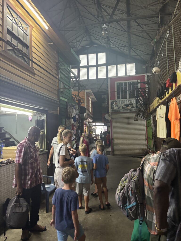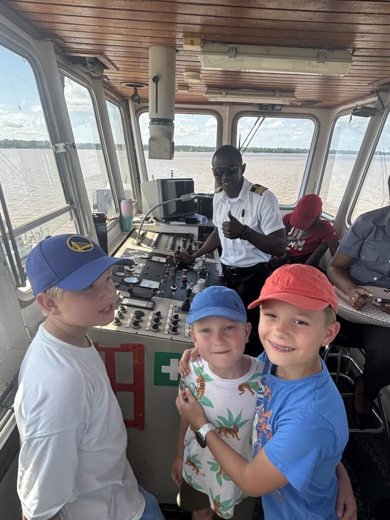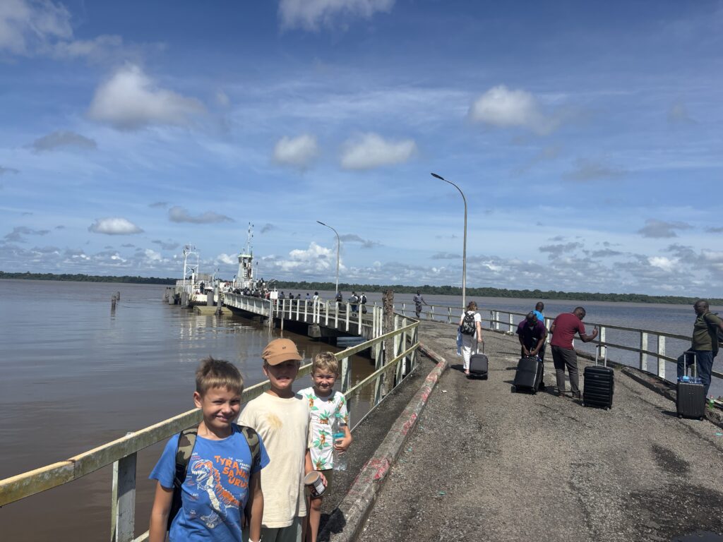 Budzik o 5:00 rano. Wyjazd o 5:30. Cel? Zdążyć na prom o 10:00, który miał nas przewieźć z Surinamu do Gujany. Sameer wciska gaz do dechy, my bez śniadania, dzieci w trybie zombie, ale jakoś dojeżdżamy. Na miejscu paszporty, kontrola, a dzieciaki w nagrodę dostają „lokalne przysmaki” z baru, czyli chipsy i nuggetsy w klimacie „międzynarodowe doświadczenia kulinarne”.