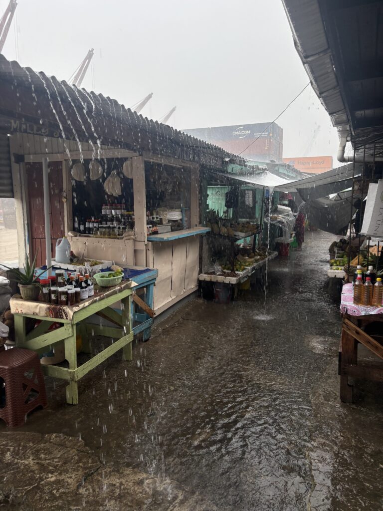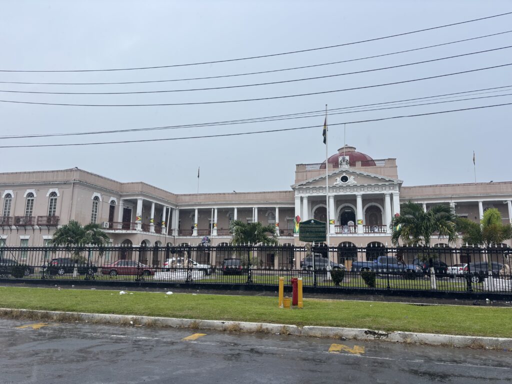 Obejrzeliśmy parlament, most tymczasowy i ten nowy, budowany z rozmachem. Szału architektonicznego brak, za to ciekawe jest to, że całe miasto leży… 2 metry poniżej poziomu morza. Na szczęście Holendrzy dawno temu postawili gigantyczny falochron, bo inaczej Georgetown już dawno byłoby wersją karaibskiej Wenecji.