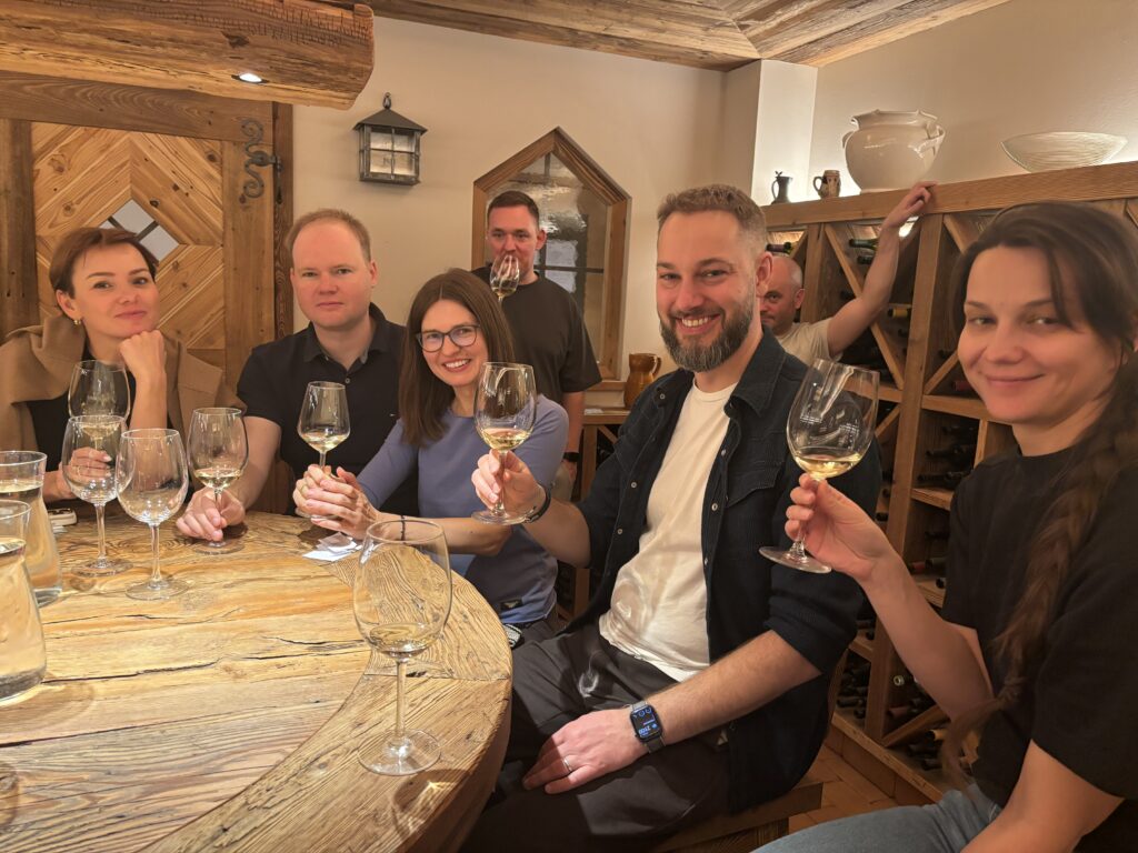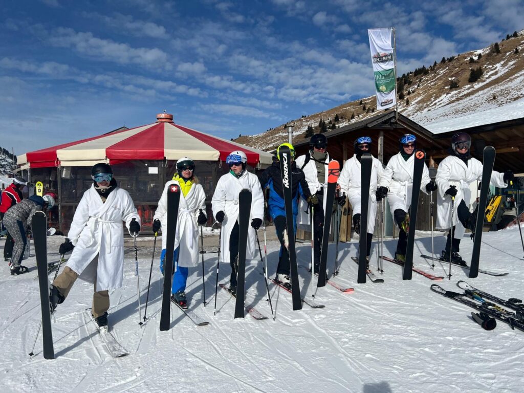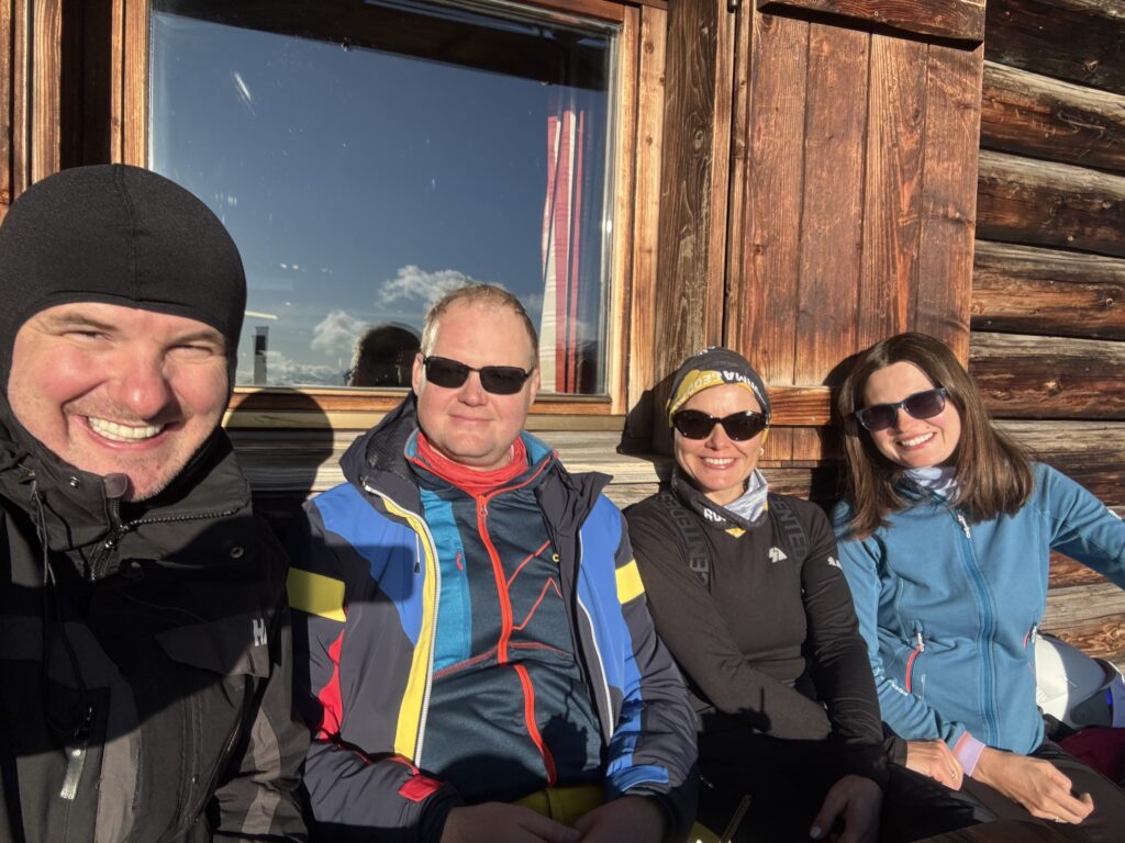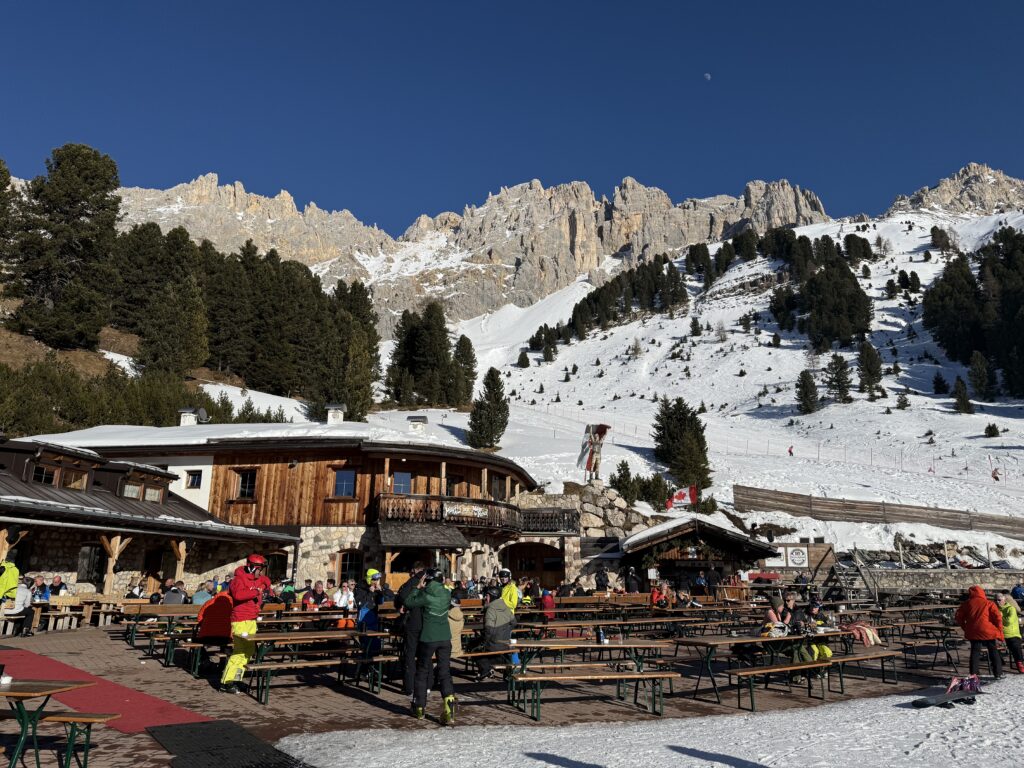 Program sportowy zakłada jak zawsze codzienne narty od 10 do 16.00, śmigamy na połączonych ze sobą 3 ośrodkach narciarskich: Pampeago, Cavaleze i Predazzo. Dzieci i Agata sa zapisani na trening narciarski, każdy w swojej grupie wiekowej. Pogoda przez 6 dni z rzędu jest idealna- bezchmurne, niebieskie niebo i przyjemne temperatury – nawet do 10 stopni w ciągu dnia. Agata ma świetną ekipę, która oprócz intensywnego treningu na stokach, regularnie odbywa degustację lokalnych włoskich napojów % tj bombardino, calimerp, grappa, prunia, i inne. Tomek szaleje na nartach z kim może, bijąc z Grzesiem rekordy prędkości (w tym roku 109km/h na czarnej trasie, prawie 60km przejechane w 1 dzień etc). Tomek to generalnie zawsze szukał kto w danym momencie jeździ i się podłączał i porywał na czarne trasy (Ania je już teraz uwielbia bo w końcu można się rozpędzić 🙂 z ciekawostek: Agata z grupą zabierają na stok szlafroki i w nich zjeżdżają 🙂 Olaf, Gucio mały, Gucio duży, Zosia i Kacper wygrywają końcowe zawody w slalomie w swoich kategoriach wiekowych 🙂 nieważne że niektórzy z nich są w tym samym wieku (Kacpra i Gucia dzielą 3 tygodnie :))