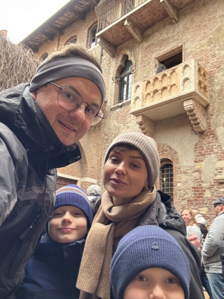 W Weronie zwiedzamy m.in. sławny balkon i miejsce zamieszkania Julii (z Romeo i Julia). Miasto nawet o tej porze roku bardzo nam się podoba – klimatyczne uliczki, bardzo zadbane, włoskie knajpki etc.