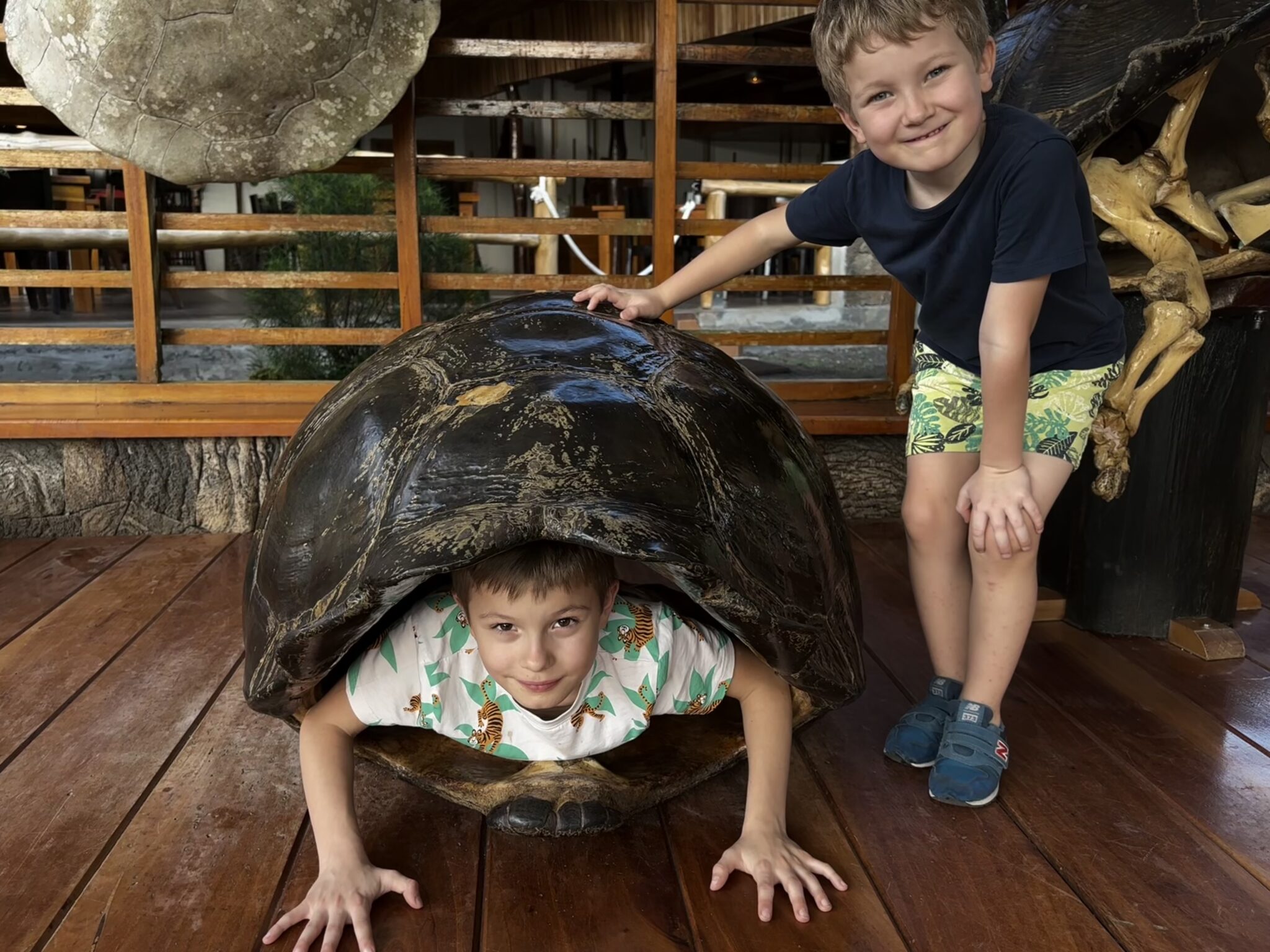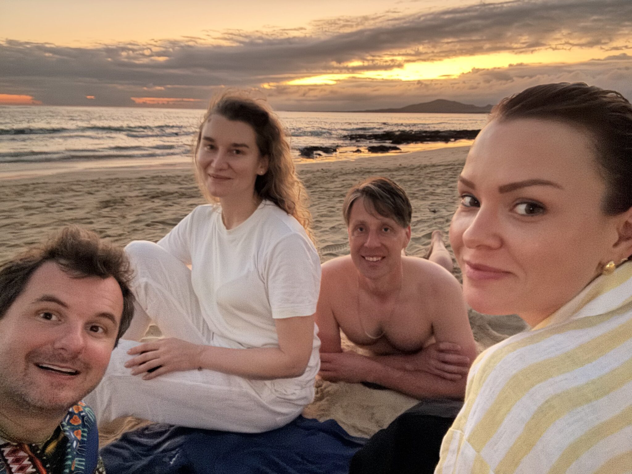 Jedziemy do największego miasta na Galapagos, Puerto Ajora, którego nabrzeże jest bardzo skomercjalizowane- pełne knajpek, barów i sklepików, wieczorem tętni życiem. Zatrzymujemy się w hotelu Ninfa, w ścisłym centrum nieopodal portu. Chłopcy przebierają się w kąpielówki i cały wieczór spędzają w basenie. Do Tomka odzywa się na Facebooku kolega ze studiów w UK, który pisze że chyba widział go na farmie żółwi 2 godziny wcześniej. Tomek nie widział go od skończenia studiów w St Andrews czyli od ponad 16 lat! Ewan przyjeżdża ze swoją ekwadorską żoną w odwiedziny do naszego hotelu, świat jest mały! Niesamowite spotkanie po latach 🙂