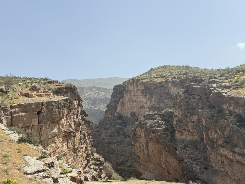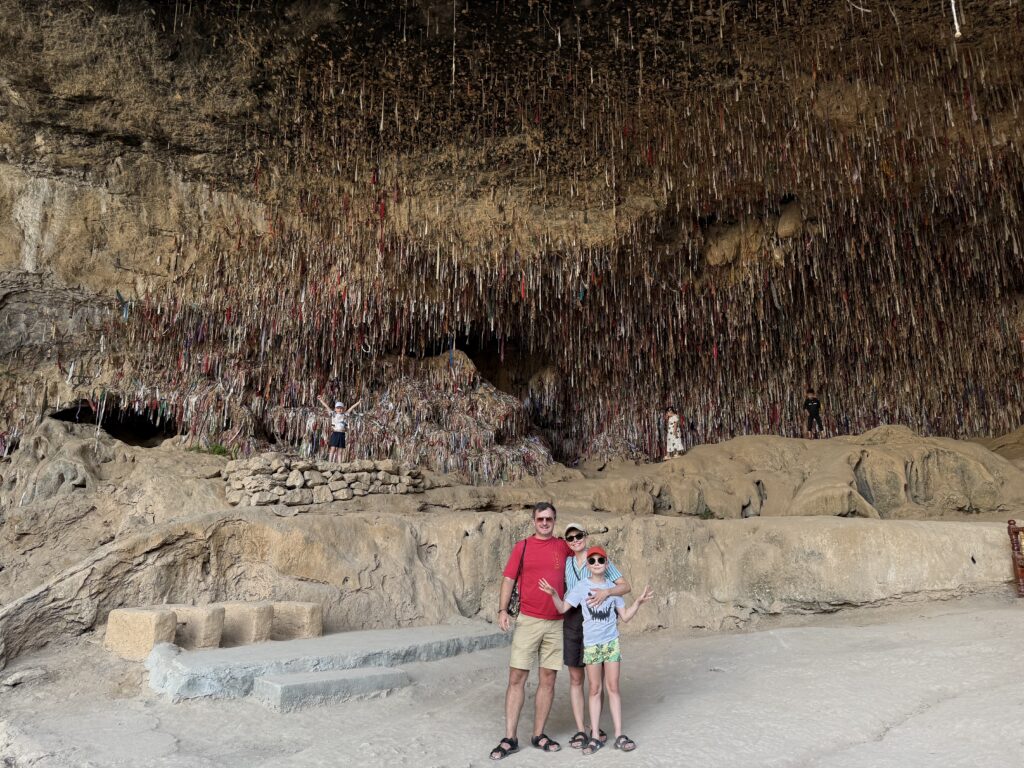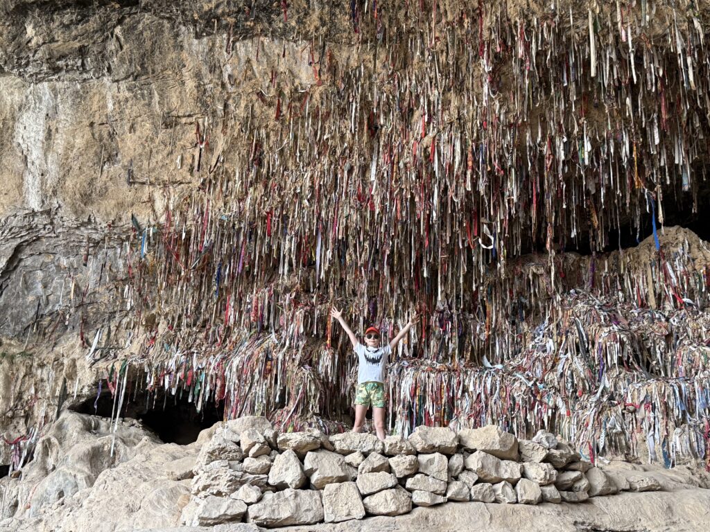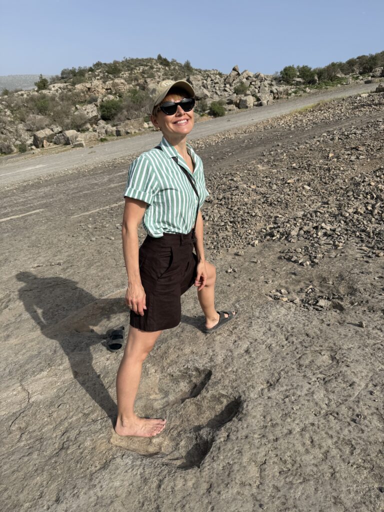 Popołudniu idziemy na spacer w kanionie  i zobaczyć jaskinie Kyrk Gyz. Miejscowi rzucają na ścianę skały wstążki/ skrawki materiałów i wierzą że jak przyczepią się one do skały to przyniesie im to dobrobyt i szczęście. Później wchodzimy na płaskowyż na którym znajdują się odciski łap dinozaurów które mają ponad 150 mln lat! Początkowo myślimy że to jakaś ściema, ale odciski wydają się być autentyczne. Po erupcji wulkanu dinozaury uciekały po wciąż goracej lawie, zostawiając odciski na miliony lat, co za impakt! Robi to na nas niesamowite wrażenie, czegoś takiego jeszcze nie widzieliśmy i aż trudno sobie to wyobrazić że te odciski są tutaj od 150m lat. Płaskowyż jest malowniczo położony, więc chillujemy się tam dłuższą chwilę.