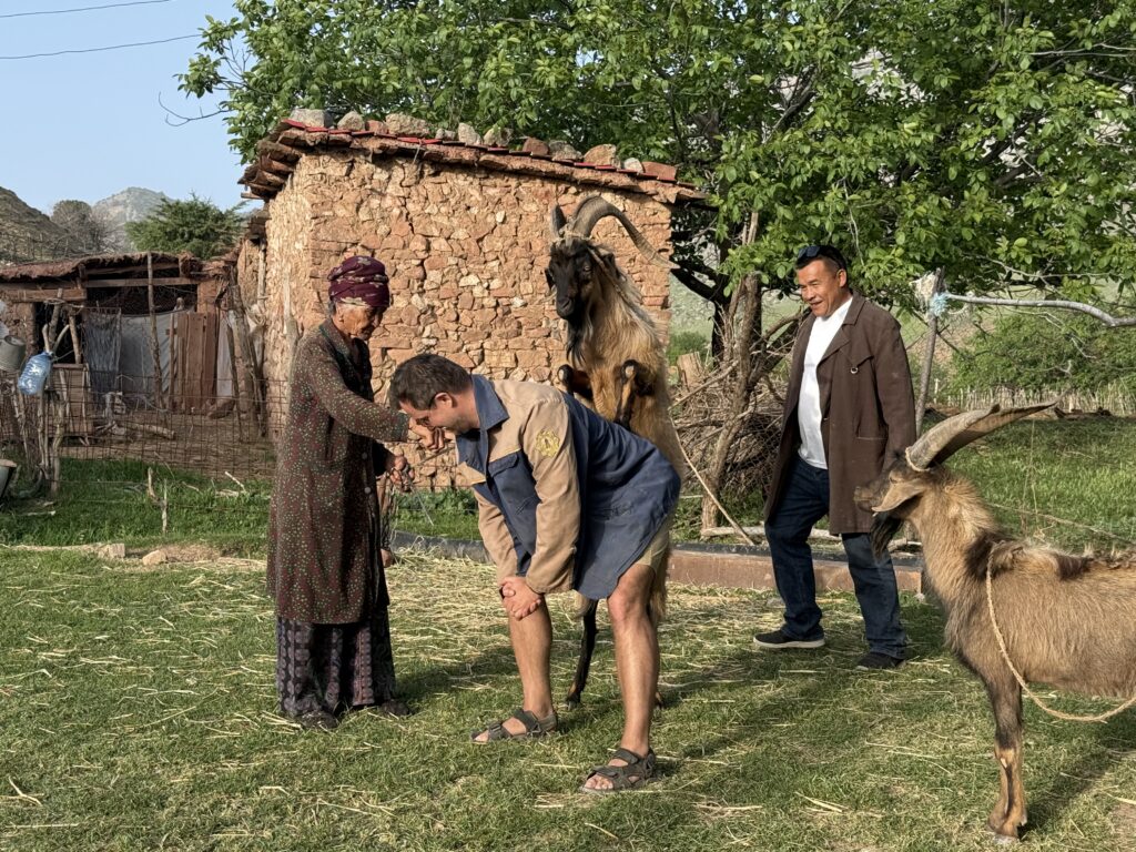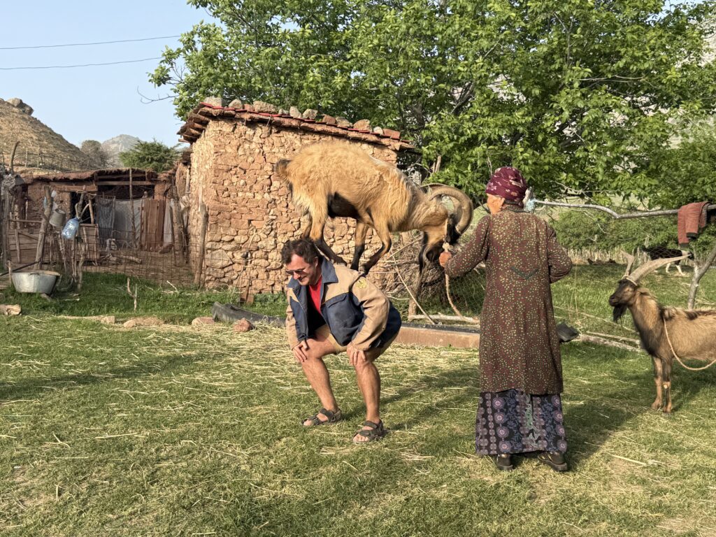 Przewodnik zabiera nas na lokalną atrakcje – masaz robiony przez.. kozę☺️ trochę nie możemy sobie tego wyobrazić ale po chwili wszystko staje się jasne:) na plecy zakłada się płaszcz i kuca się, a koza wskazuje na plecy i po nich chodzi☺️ Ciekawa rozrywka, Tomek jest w pełni wymasowany :))